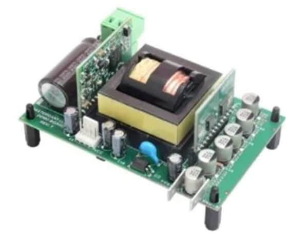 By leveraging the high level of integration of MasterGaN, it is possible to create a 250W compact, highly efficient switch mode power supply without heatsinks (Figure 1). The power supply offers an excellent example of reducing space on a power supply design. The board is architected as a mainboard with two vertical daughter cards. The daughter card on the left is the MASTERGAN1 circuit, while the one on the right is the synchronous rectifier circuit for the secondary side. The design includes short circuit, overload, brownout, and overvoltage protection. The ST L6599A resonant LLC controller in this design runs at a frequency of 160kHz, although the controller can run up to 700kHz, and the design features integrated gate drivers with a 15V output drive. MasterGaN is entirely compatible with the L6599A due to its wide input-voltage range and high-frequency capability. This design also includes an SRK2001 LLC resonant controller. When combined with standard silicon MOSFETs, this controller helps maximize power-supply efficiency by reducing output losses.